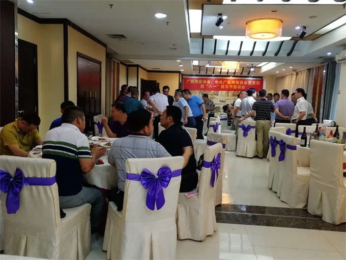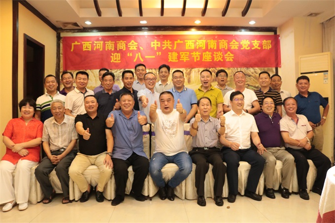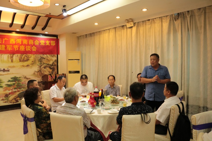 本會訊 2018年7月20日18時,廣西河南商會,中共廣西河南商會黨支部在南寧市桃源路43號五千年大酒樓舉行《慶“八·一”建軍節座談會》。