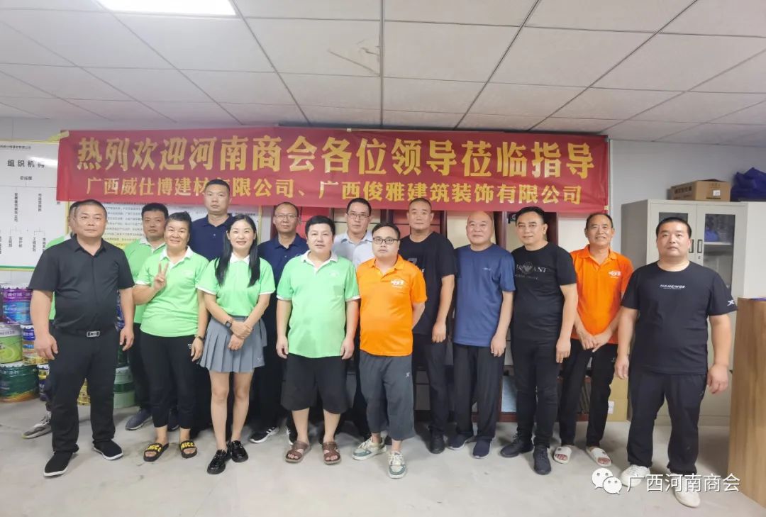 本會訊 2023年8月7日下午,廣西河南商會副會長高杰帶領(lǐng)秘書處工作人員,冒雨趕赴南寧市興寧區(qū)和江南區(qū),先后走訪了廣西南寧圣良酒店用品有限公司、廣西國鑫裝飾材料有限公司、廣西威仕博建材有限公司、廣西俊雅建筑裝飾有限公司等四家會員企業(yè)。