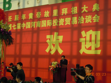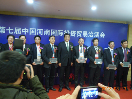 第七屆中國河南國際投資貿易洽談會于2012年3月23日上午在鄭州召開,來自國內外的代表1700多人,出席開幕式和招商活動。本次洽談會共簽約了400多個項目,投資總額3000多億元。全國政協副主席,全國式商聯主席黃孟復、河南省委書記盧展工,河南省長郭庚茂等領導出席大會。
