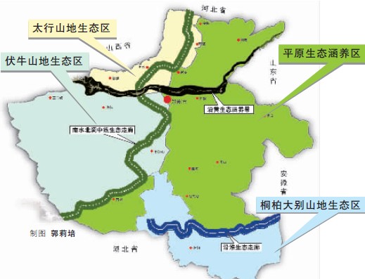 太行山地生態(tài)區(qū),位于豫北地區(qū)西部,范圍基本以海拔200米等高線為劃分界限,北至豫晉省界,南至黃河。它的功能定位是生物多樣性保護,水源涵養(yǎng),農(nóng)產(chǎn)品提供。