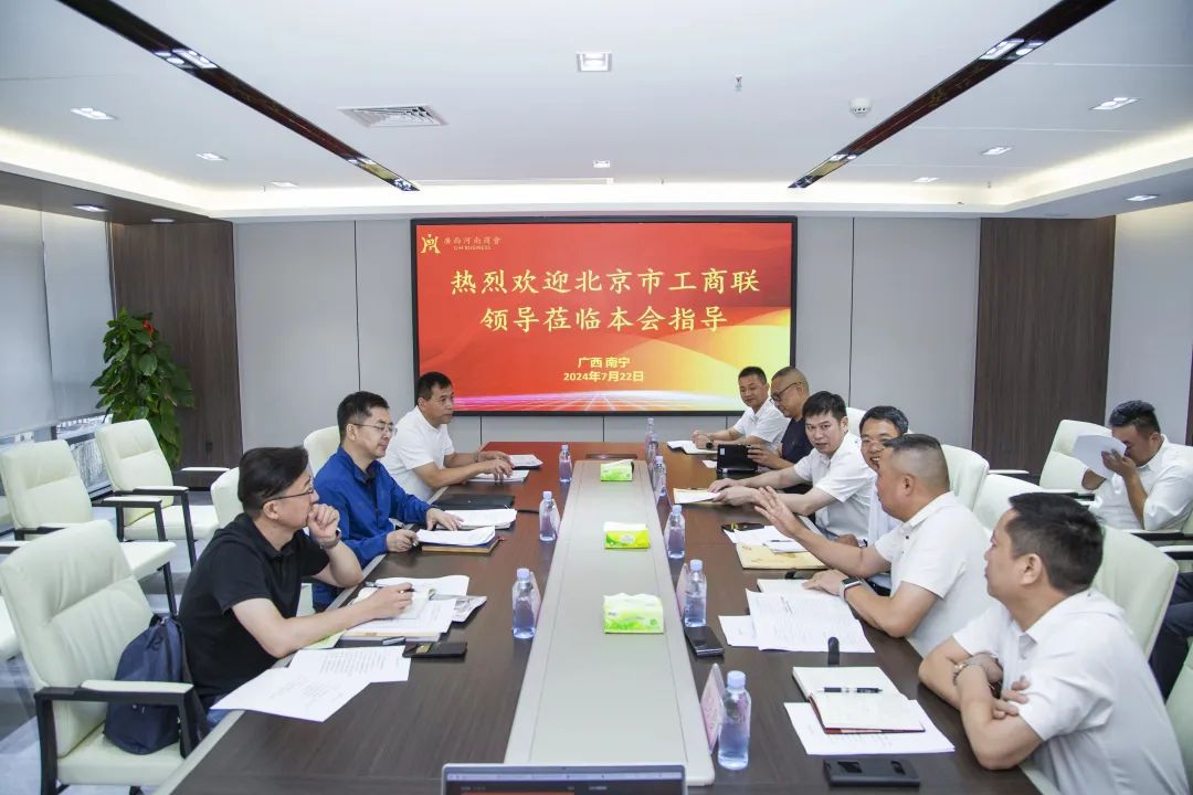 本會訊 2024年7月22日下午,北京市工商聯黨組副書記、副主席王禹;北京市工商聯會員處副處長齊飛;北京市物流商會會長田明等在自治區工商聯黨組成員、副主席賓建光;自治區工商聯會員部副部長、二級調研員洪青松陪同下蒞臨本會開展“四好”商會建設互學互促活動。